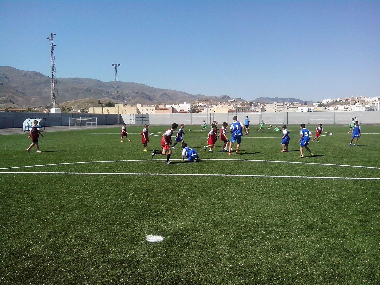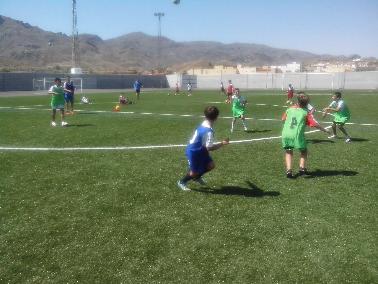 A su vez, los «futbolistas del futuro» se ejercitaron en el campo municipal perfeccionando los lanzamientos a portería, tecnificando la conducción del balón y pasaron un rato muy divertido en un minipartidillo junto con sus técnicos.