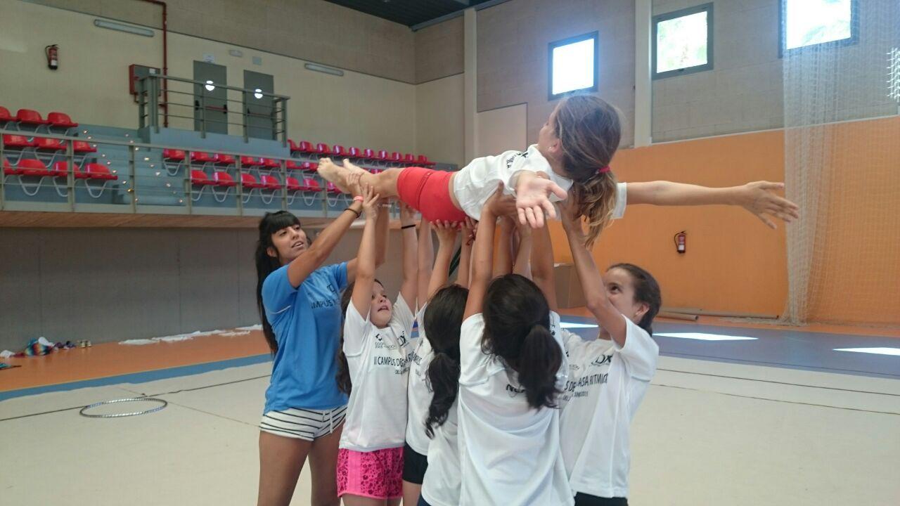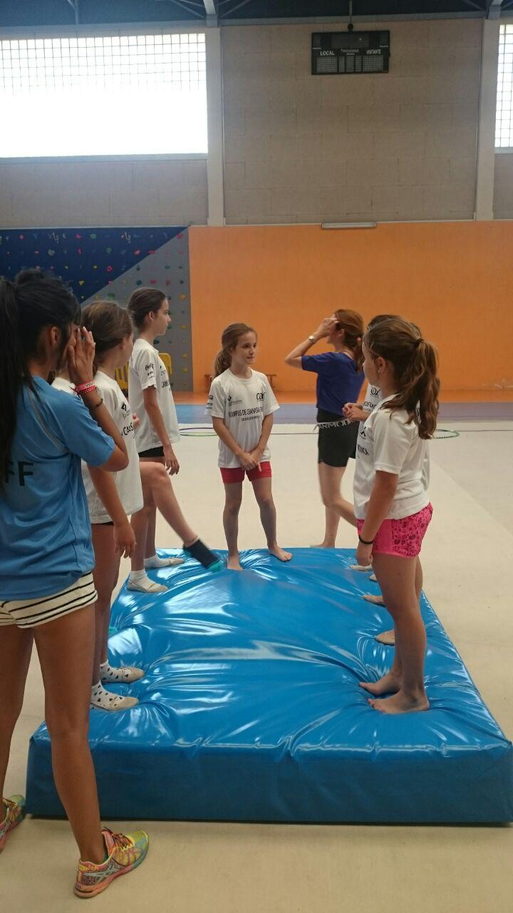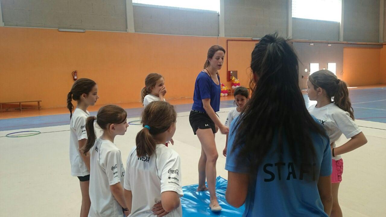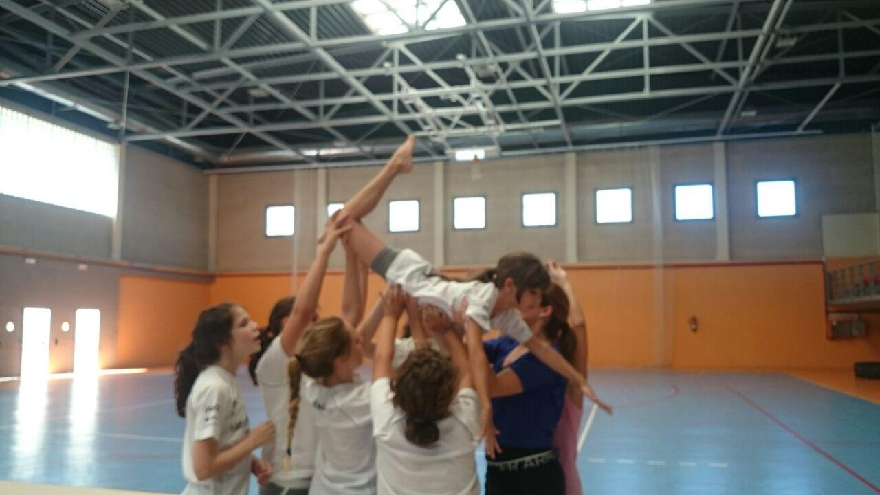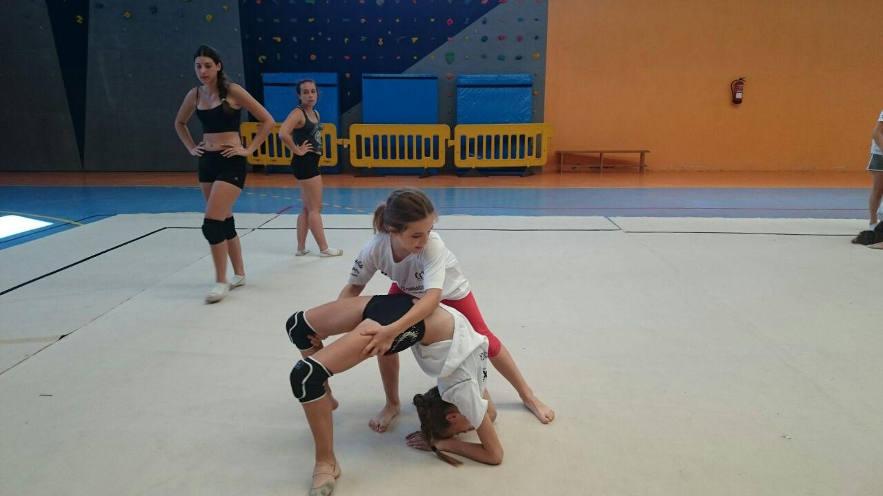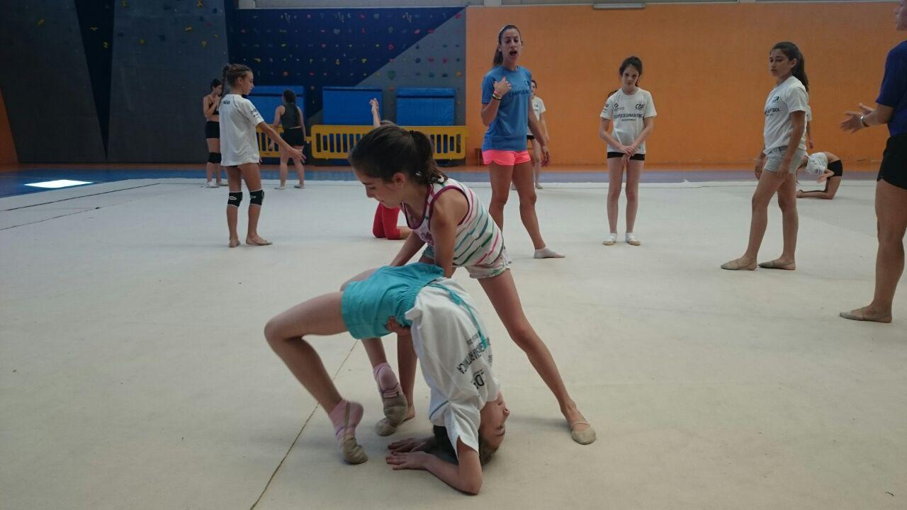 Las chicas de gimnasia rítmica pudieron contar con la preparación y experiencia de Manuela Esteban la cual desarrolló sesiones de acrosport y acrobacias.